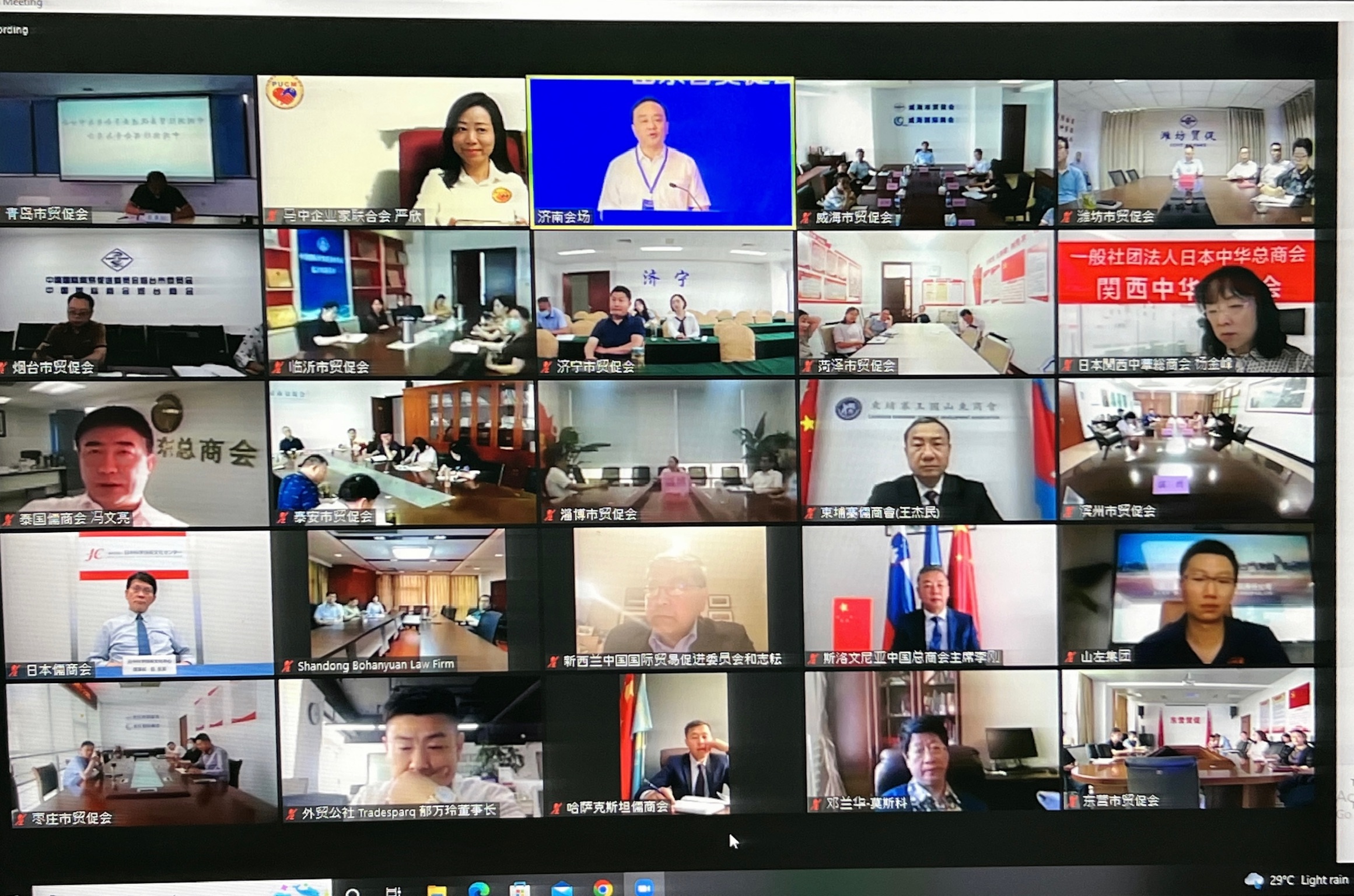 6月8日,首届山东国际儒商会年会暨项目对接洽谈会以线上线下相结合的形式成功举办。来自20多个国家的境外儒商会代表、境外华人华侨组织及境内外企业代表共千余人参加活动。山东省贸促会孟向东会长出席活动并致辞,鼓励境外各儒商会与省内加强信息交流、拓展合作渠道、参与家乡建设、传播齐鲁文化,做山东对外开放的探路者、对外合作的撮合家、促进山东发展的实干家、中华文明和齐鲁文化的传播者。省侨办、省工商联领导分别致辞,表示将充分整合境外内资源,发挥山东国际儒商会作用,服务山东高质量发展和高水平对外开放;日中科学技术文化交流中心巨东英理事长、斯洛文尼亚中国总商会李刚主席、巴基斯坦中国工商联合会王子海会长、马来西亚中国企业家联合会(PUCM)总会长拿督李中平及其他十余个国家的儒商会代表分别发言,为山东对外经贸交流与合作建言献策。