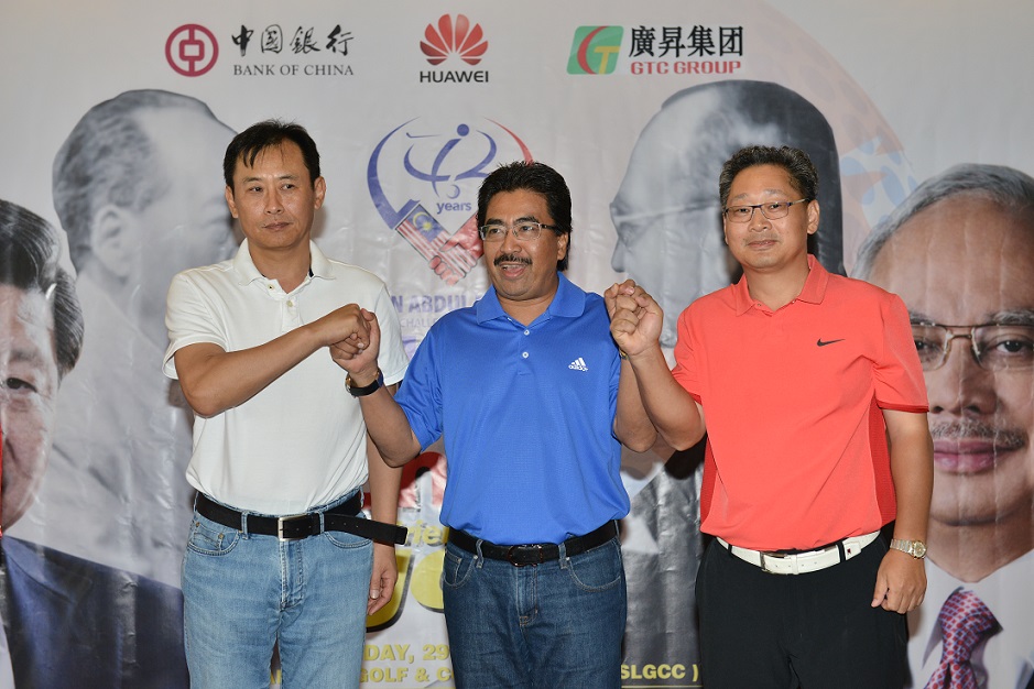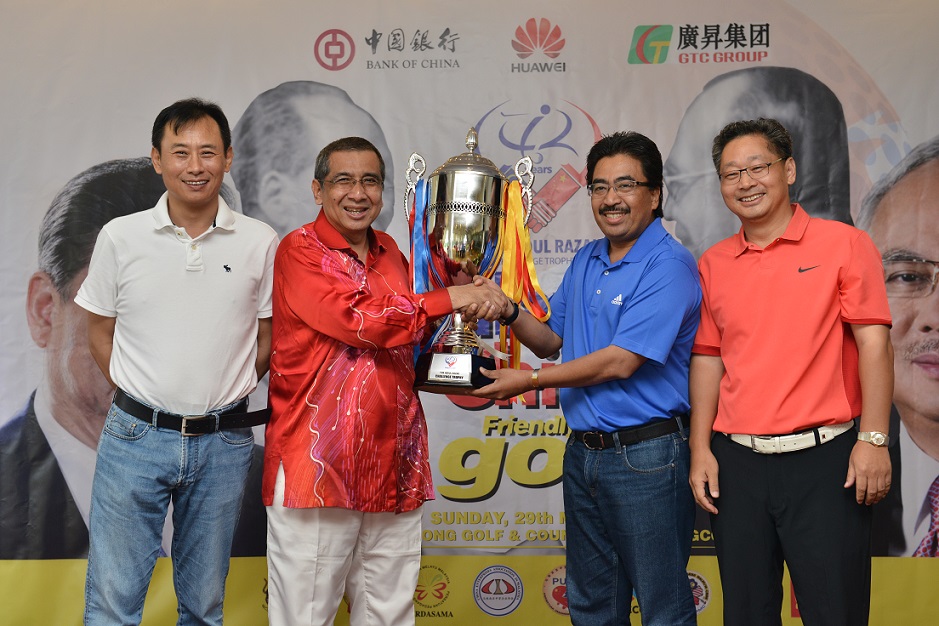 为庆祝马来西亚中国建交42周年,马来西亚中国创业家联合会(PUCM)、马来西亚马来人商会(PERDASAMA)、马来西亚中资企业协会(CENAM)、等5月29日在吉隆坡联合成功主办了“敦拉萨杯”马中高尔夫球友谊赛,马来西亚财政部拿督佐哈里副部长出席本次活动。