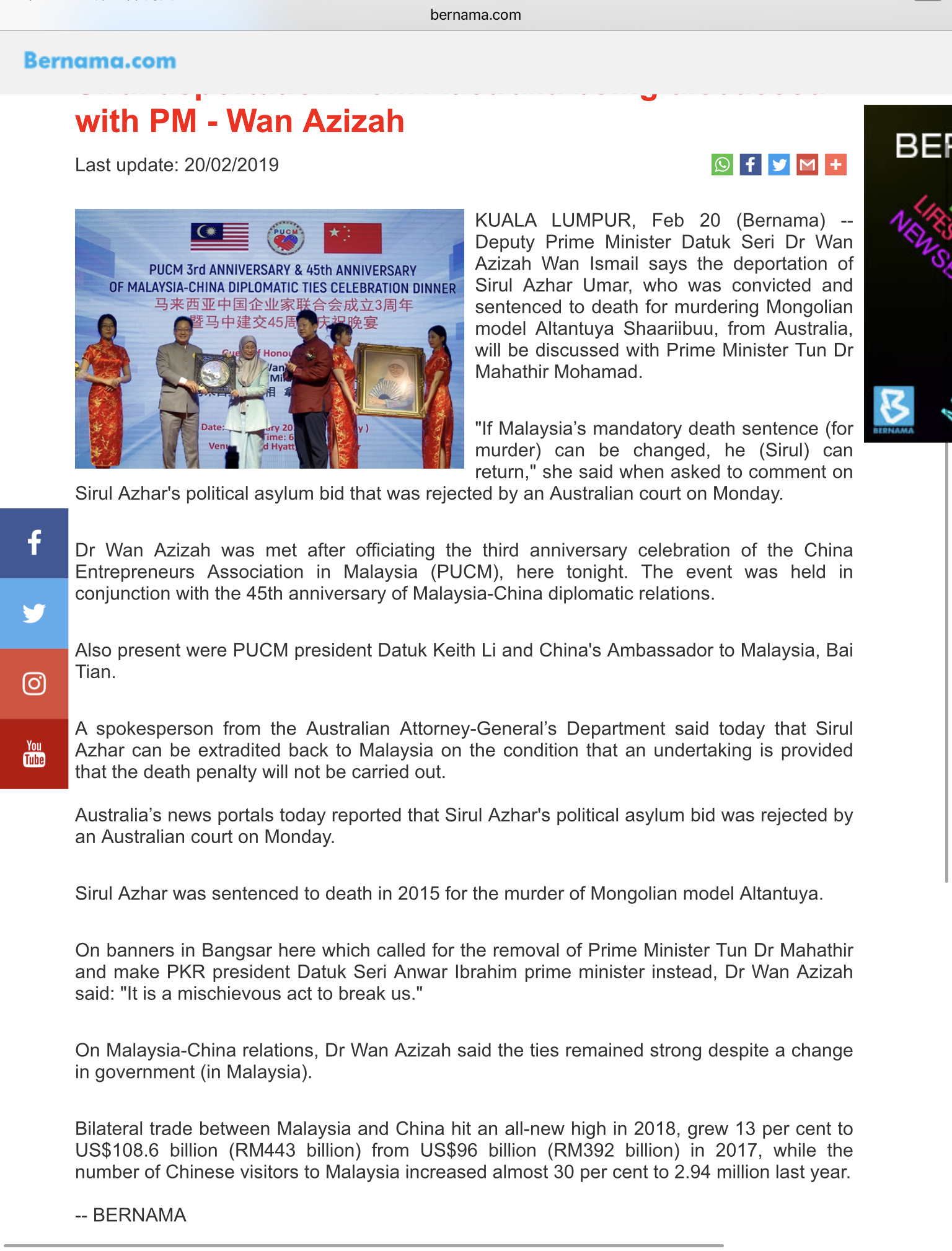 DPM officiated PUCM’s Malaysia-China 45th Anniversary Celebration Dinner